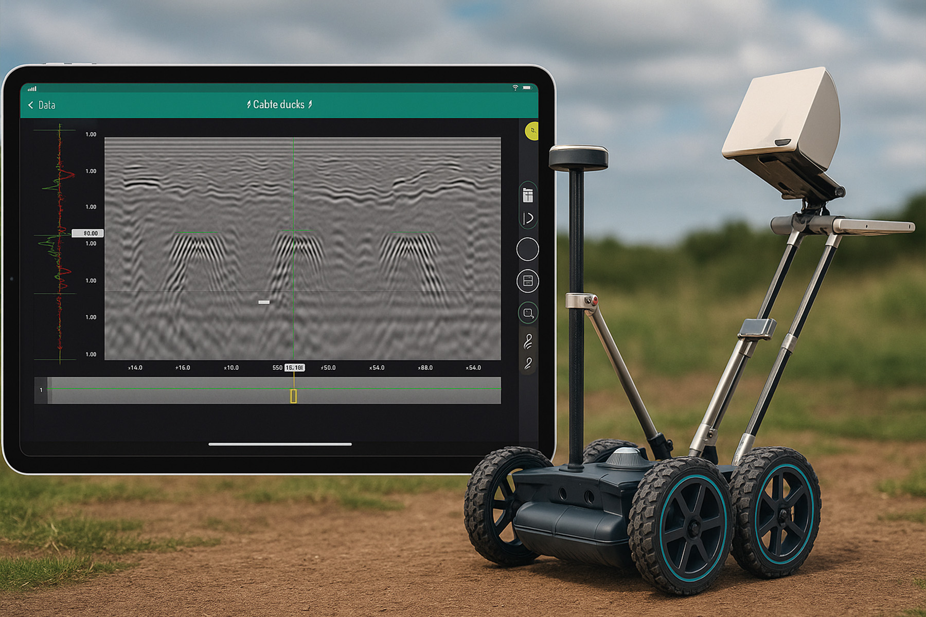 Detectsol envanterinde bulunan Proceq GS8000, en son teknolojiyle donatılmış, yüksek çözünürlüklü ve GNSS destekli bir Yer Radarı (GPR – Ground Penetrating Radar or Georadar) sistemidir. Arkeolojik araştırmalardan altyapı haritalamasına kadar birçok farklı alanda, yer altı yapılarının tahribatsız şekilde görüntülenmesini sağlar.